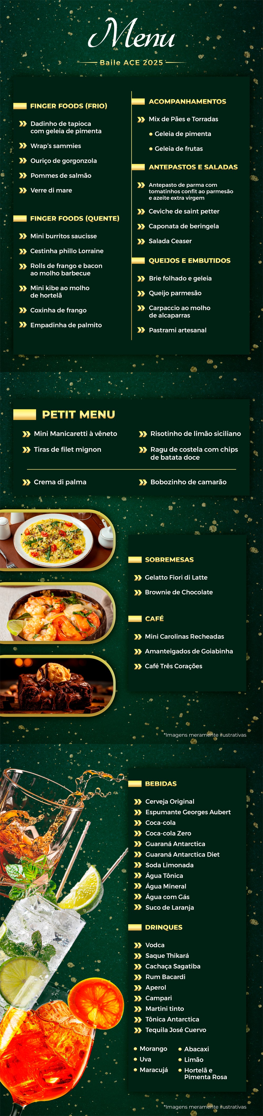 É com muita alegria que convidamos você para o Baile ACE 2025, uma noite inesquecível, cuidadosamente planejada para superar expectativas, proporcionando aos convidados momentos incríveis com experiência única e memorável.