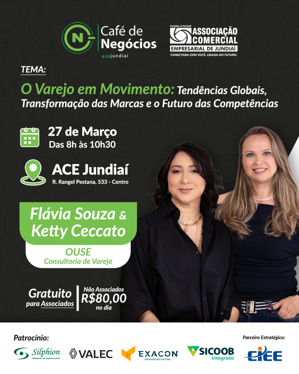 Venha participar de mais uma edição do nosso Café de Negócios! Um encontro dinâmico e imperdível para empreendedores e profissionais que querem ampliar sua rede de contatos, trocar experiências e conquistar novas parcerias.